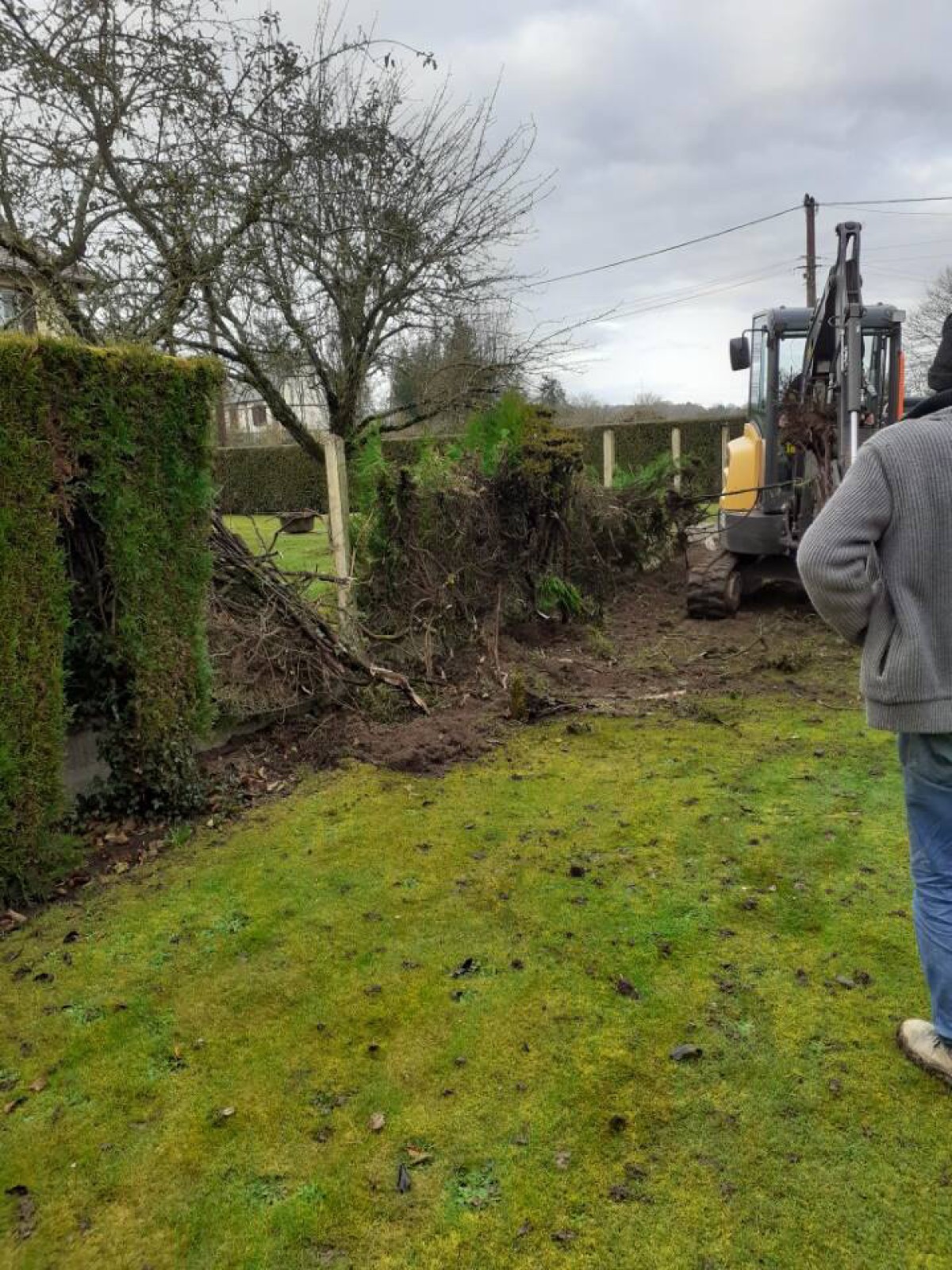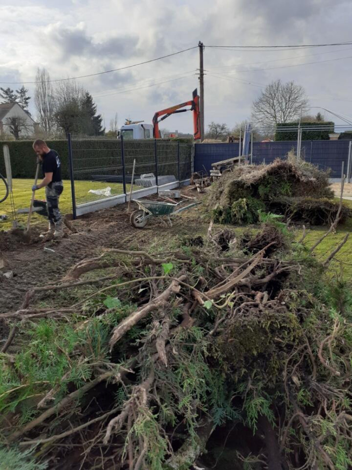 Sur ce chantier, nous nous sommes occupés de l'arrachage de la haie de thuyas, l'enlèvement et la mise en déchetterie des déchets verts. Nous avons ensuite réalisé l'installation de la clôture occultante en panneaux de grillage rigide gris anthracite (RAL 7016). Sur ces clôtures pleines les poteaux sont scellés au béton sur 75cm de profondeur. Nous avons installés des dalles de soubassement en béton gris. Les lames occultantes sont en PVC gris anthracite. Ce sont des modèles 3D qui se glissent simplement dans les lames du grillage.